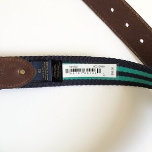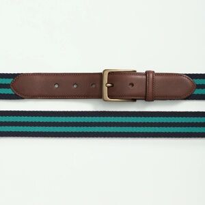 This classic belt from Brooks Brothers is a size 42 in a vibrant green & navy stripe. It is brand new with tags still attached.