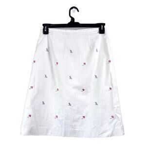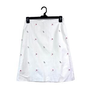 Brooks Brothers White Mini Skirt with Pink Embroidery