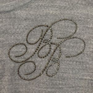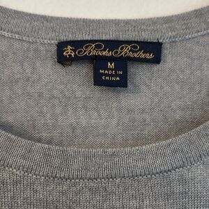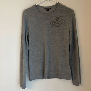 Brooks Brothers Women 100% merino wool logo gray knit sweater lightweight medium