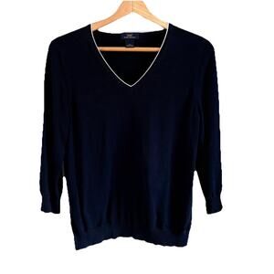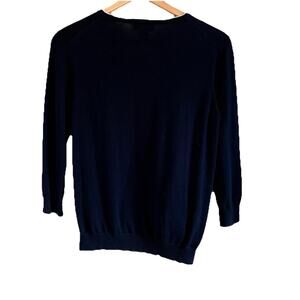Brooks Brothers Women’s 3/4 Sleeve V-Neck Dark Navy Blue Silk Blend Sweater Sz M