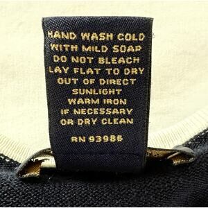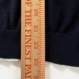 This Brooks Brothers women's 3/4 sleeve V-neck dark navy blue silk blend sweater in size medium is a classic and stylish addition to any wardrobe. Made from a luxurious silk blend fabric, this sweater is perfect for various occasions including travel, parties, and casual outings. The solid dark blue color and V-neck neckline add a touch of sophistication, while the 3/4 sleeves provide comfort and versatility. The chest measures 33 inches, the length is 23 inches, and the shoulder seam to wrist length is 17 inches. With its tight-knit construction and lightweight feel, this sweater is ideal for wearing in the summer, fall, and spring seasons.
