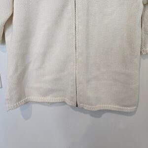 Brooks Brothers Womens Cotton Cardigan Medium Cream Short Sleeve Zip Up Sweater