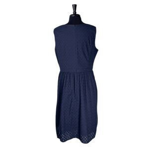 Brooks Brothers Women’s Dress 16 Navy Blue Eyelet Cotton Sleeveless Midi Preppy