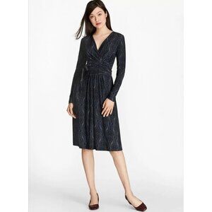 Brooks Brothers Women's Dress Sz S Black Gray Knit Long Sleeve Faux Wrap Midi
