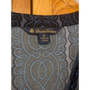 Excellent pre-owned condition!The product is a Brooks Brothers women's dress in size small, featuring a black and gray color and a faux wrap design. It has long sleeves, a V-neckline, and a pullover closure. The knit fabric is made from a polyester blend, making it easy to care for as it is machine washable. This midi-length dress is suitable for casual or business occasions during the winter and fall seasons, showcasing the classic style and quality associated with Brooks Brothers.