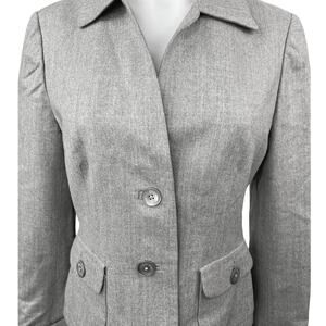 Brooks Brothers Women's Gray 100% Wool Two Button Collar Blazer Jacket Coat 4