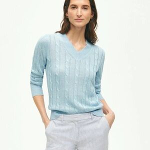 Brooks Brothers Women's Italian Linen Cable Knit Sweater Navy Blue Size Medium