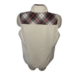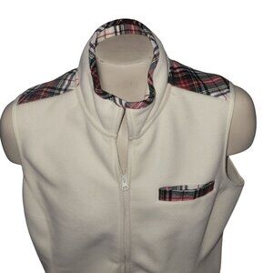 Brooks Brothers Womens Ivory Fleece Vest W/ Plaid Trim L luxury avant-garde