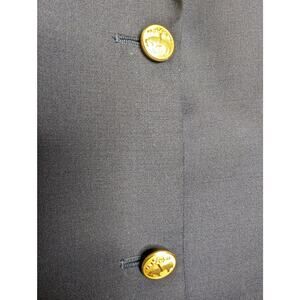 Brooks Brothers Women's Loro Piana Two Button Wool Blazer Jacket in Dark Navy Blue. Button detail on cuffs, two front pockets. All buttons have sheep on them. Made in Italy.