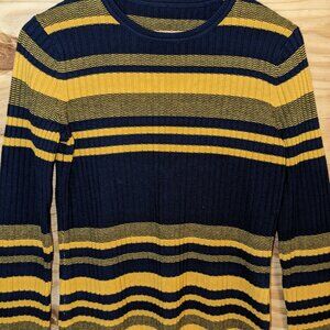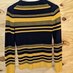 Brooks Brothers Women's Medium 100% Merino Wool Striped Sweater Gold Blue U of M