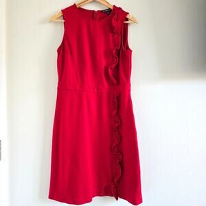 Brooks Brothers Womens Shift Dress Red Size M Ruffled Sleeveless Career Date