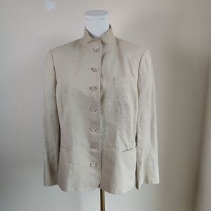 Brooks Brothers Womens Size 12 100% Irish Linen Mandarin Collar Blazer