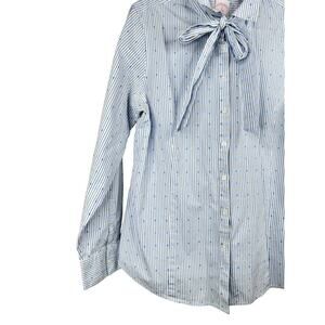 Brooks Brothers Womens Striped Funfetti Dot Tie Neck Button Down Blouse Size 14