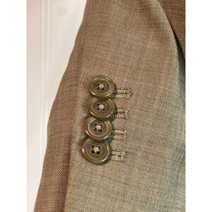 A classic Brooks Brothers blazer tailored from fine wool, offering sophistication for business or formal settings. Its subtle tan shade exudes elegance.