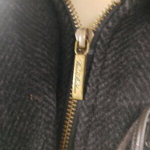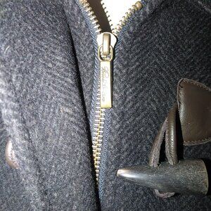 A classic Brooks Brothers duffle coat, crafted with a wool blend, offers timeless style and warmth. The coat features a sophisticated herringbone pattern, providing a textured appearance that enhances its elegance. Toggle closures add a touch of traditional charm while ensuring practicality and ease of use. Luxurious and durable, this coat is a staple piece for cooler weather.
