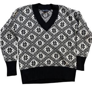 Brooks Brothers Wool Blend Black & White Snowflake V-Neck Sweater Size Small