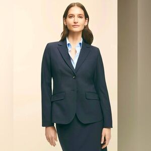 Inspired by a classic Brooks Brothers menswear staple, this two-button blazer is made from luxurious wool woven by the world-renown Italian mill Loro Piana®. Two shank buttons and pick stitching add to the polished, refined styling, while lightly padded shoulders and darting lend a modern fit. Pick-stitched notched lapels and placket; dual-flap welt pockets; single vent at back; fully lined interior.