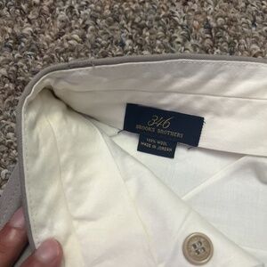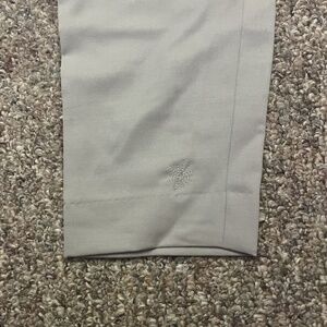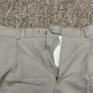 Selling a really nice pair of Brooks Brothers wool pants in a beige/brown color. Got these tailored a while back. About a 7 inch leg opening and 30 inch waist. Really soft and comfortable. Has a few spots that were holes and my tailor fixed them with nice embellishments. Also the back of one leg has some distressing but can easily be fixed by a tailor. The waist flap doesn’t align with the button but again this can be fixed by a tailor. Other than that good condition!
