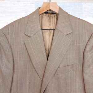 Brooks Brothers Wool Silk Blend Sport Coat Brown Windowpane 2 Button Mens 40R