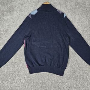 Brooks Brothers Wool Sweater Mens XL Blue Argyle 1/4 Zip Preppy Grandpacore