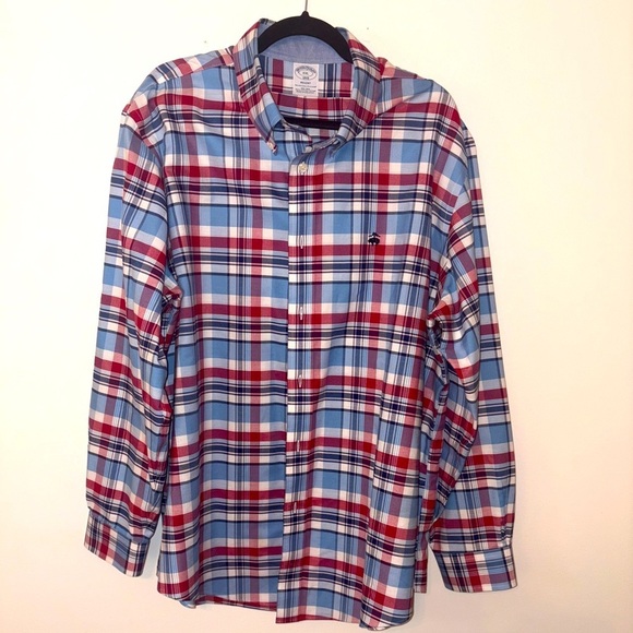 Brooks Brothers XXL Red White Blue Plaid Regent Collared Long Sleeve Shirt
