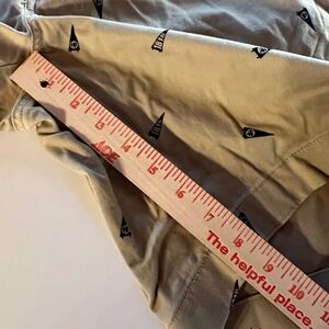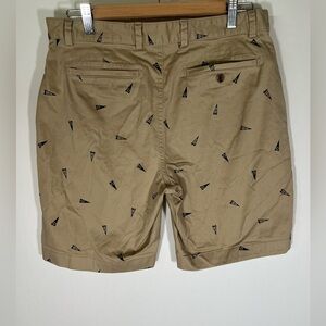 Brooks Brothers khaki flat front blue flags all over print sz 33 preppy shorts