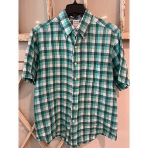 Brooks Brothers size large Irish linen button down shirt in excellent condition. Measures 25” from armpit to armpit and 30” long.