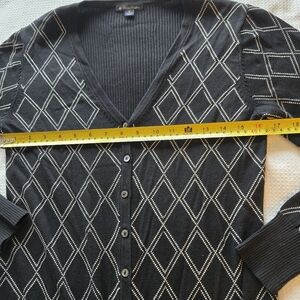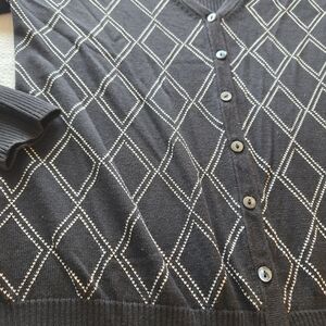 classic, argyle, geometric, long sleeve, v-neck, fitted cardigan
