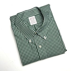 Brooks Brothers Button Down Shirt Madison Fit Cotton Green Gingham Plaid 17,5-33