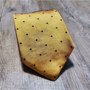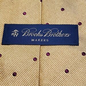 Brooks Brothers Makers 100% Pure Jacquard Silk Necktie Tie Gold Red Polka Dot