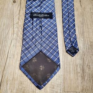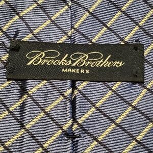 Brooks Brothers Makers Silk Tie Gold Blue Basket Weave Geometric 58 x 3.75