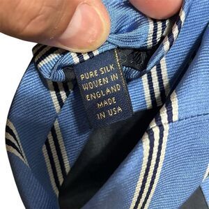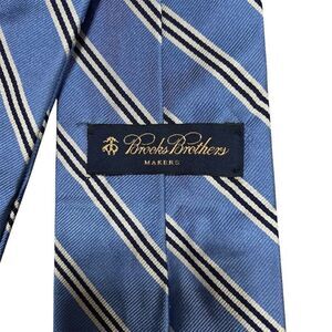 Keywords: Brooks Brothers, blue tie, men's designer tie, silk tie, striped pattern, classic width, formal wear, business attire, wedding accessory, USA made, men's fashion, elegant tie, pre-owned tie, classic length, men's accessories.
