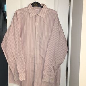 Brooks Brothers Pink Red Stripe non iron shirt L