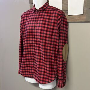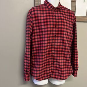 Brooks Brothers Red Black Checkered Long Sleeve Button Down Cotton Shirt- Large