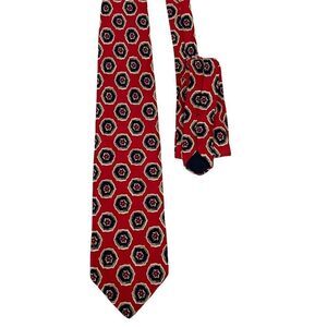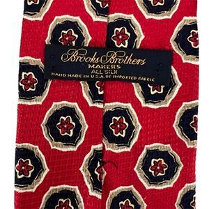 Brooks Brothers Silk Tie Red Black + Gold Medallion Dot Print