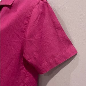 100% Linen fuchsia blouse with 4 button closure. Short sleeve, collared. This company is no longer around and that makes this a rare find indeed.