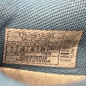 These shoes are great for the trails and are in GREAT shape. Great for the Cross Country team. Great Colorway scheme in Oyster/Blissful Blue/Pink. The shoe reads Pink but I think it's more of a fluorescent Coral Color.