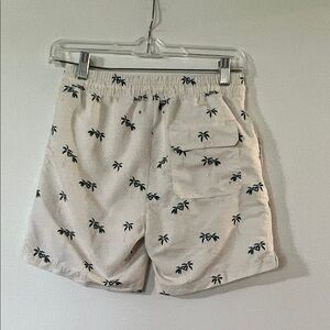Stylish swim trunks with palm tree pattern. Perfect for beach fun.