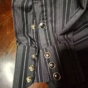 Brooks & Dunn Collection Size L Panhandle Slim pearl snaps, long sleeved shirt, 100% cotton, 24" sleeve, middle of shoulder to bottom of shirt 26", pit to pit 21", shirt is black & gray correct color is the picture of the sleeve cuff.
