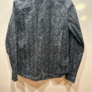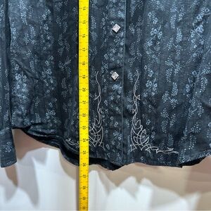 Add a touch of western style to your wardrobe with this Brooks & Dunn Panhandle Slim shirt. The black floral pattern, collared neckline, and snap closure make it a versatile piece for both casual and formal occasions. The long sleeves and casual sleeve type provide comfort and flexibility, while the slimming features enhance your silhouette.