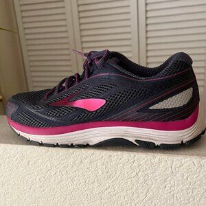Update to the streamlined redesign of a running favorite! Kick up the dust in the plush cushioning and light support of the Brooks® Dyad 9 running shoe. Predecessor: Dyad 8. Support Type: Neutral to underpronation (supination). Cushioning: High energizing cushioning. Surface: Road. Differential: 10 mm. Built for the runner needing a little extra support in a neutral platform. Ideal for orthotic wearers and flat-footed athletes alike. Moisture-managing mesh and synthetic upper materials. Lace-up closure. Padded tongue and collar. Breathable fabric lining offers a great in-shoe feel. Removable foam insole supplies light underfoot cushioning. BioMoGo DNA is a blend of earth-friendly BioMoGo and responsive Brooks DNA, and has a gender-friendly cushioning design, making for a dynamic ride. Dual stability arch pods. Heel Segmented crash pad absorbs shock to ensure smoother transitions. Blown rubber outsole delivers light cushioning and grip. Linear platform.