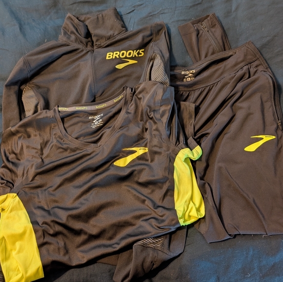 Brooks elite short sleeve dry wick shirt, pants, and pull over all size small and all in good condition. Please let me know if you have any questions and feel free to make an offer!