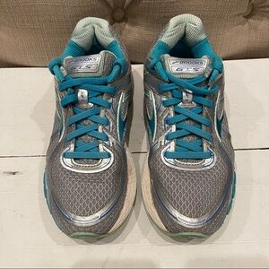 Brooks GTS 16th Edition FlexTra Sole sneaker Sz 7 Silver/Turquoises
