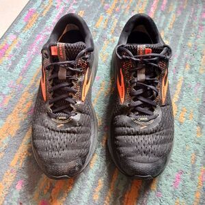 Pre-owned Brooks mens shoes size 9.5 D Gort-tex Ghost 11 black and orange , check pics for wear on bottom, otherwise great condition