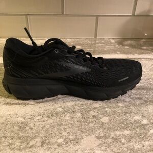 Brooks Ghost 13 - Experience the perfect blend of style and performance with Brooks black athletic shoes. Designed with a breathable mesh upper and synthetic overlays, these shoes offer excellent support and ventilation. The cushioned midsole ensures superior impact absorption, making them ideal for running and training.clean smoke free with no rips tears or defects