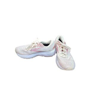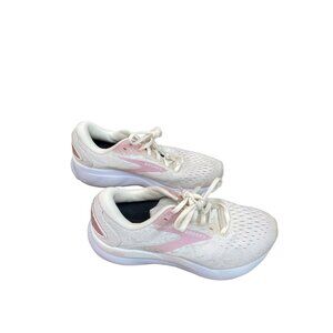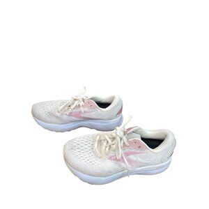 The Brooks Ghost 15 offers a seamless blend of comfort and performance. Designed for women, these running shoes feature a breathable mesh upper and responsive cushioning, ensuring a smooth ride. The stylish pink and white colorway adds a touch of elegance to your running gear, making them a versatile choice. Minor wear pointed in pics. No other defects noted. SKU 9172