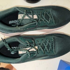 Brooks running shoes in green and tan. Perfect for active lifestyles.