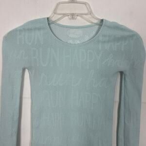 Brooks Girls pullover in baby blue. Round neck. Long sleeves. Breathable mesh fabric. Stretch. In good used condition. No visible flaws.