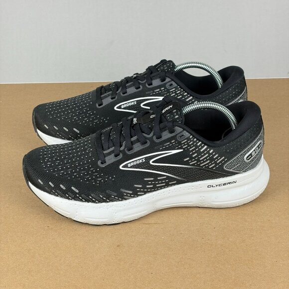 Brooks Glycerin 20 Athletic Running Shoes Womens 8.5 Black White Low Top Lace Up