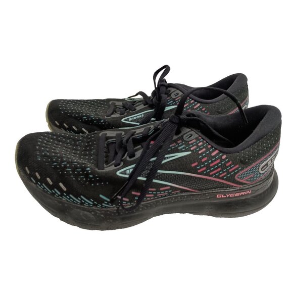 Brooks Glycerin 20 Womens Road Running Shoes Size 7 Black Pink Lace Up Athletic